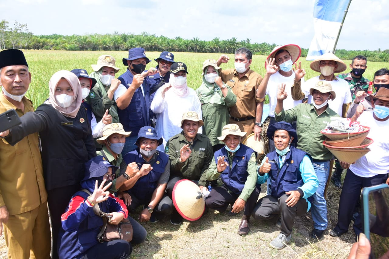 Bupati Kasmarni Panen Raya Padi Bersama Masyarakat Desa Tanjung Belit Kecamatan Siak Kecil