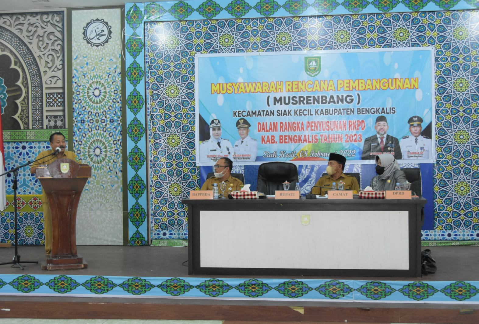 Hal tersebut disampaikan Bupati Bengkalis Kasmarni melalui Asisten Perekonomian dan Pembangunan Setda H Heri Indra Putra, Selasa, 8 Februari 2022 pada pembukaan Musrenbang di Kecamatan Siak Kecil.