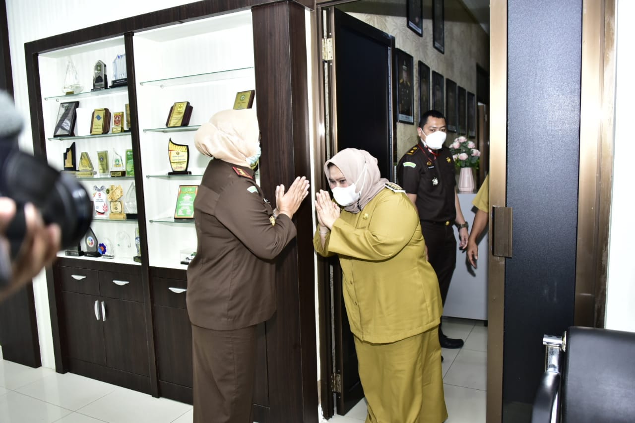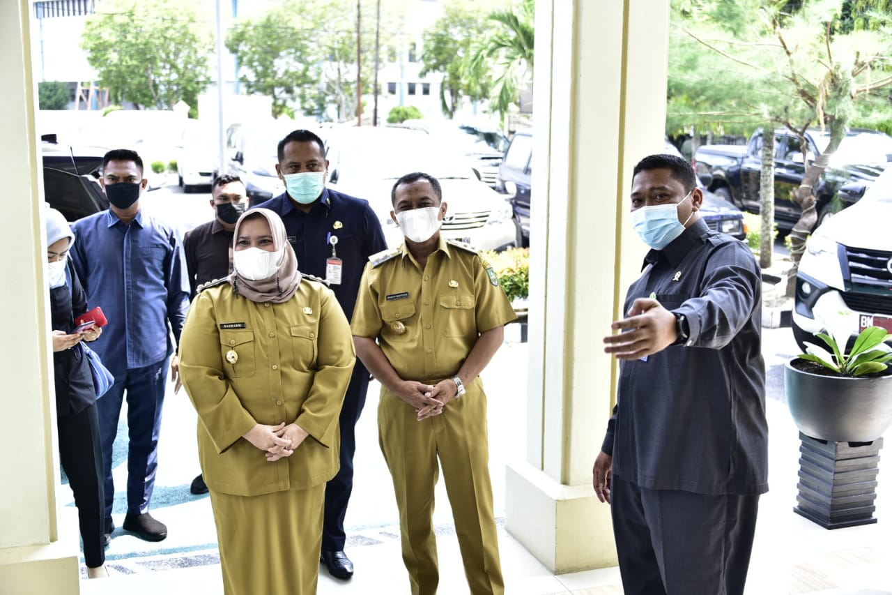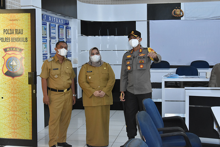 BENGKALIS - Setelah memimpin rapat bersama para Pejabat Tinggi, Kepala Perangkat Daerah dan Kepala Bagian, Bupati Bengkalis Kasmarni dan Wakil Bupati H Bagus Santoso, melakukan kunjungan silaturahmi ke instansi vertikal anggota Forum Koordinasi Pimpinan Daerah (Forkopimda), Senin, 1 Maret 2021.